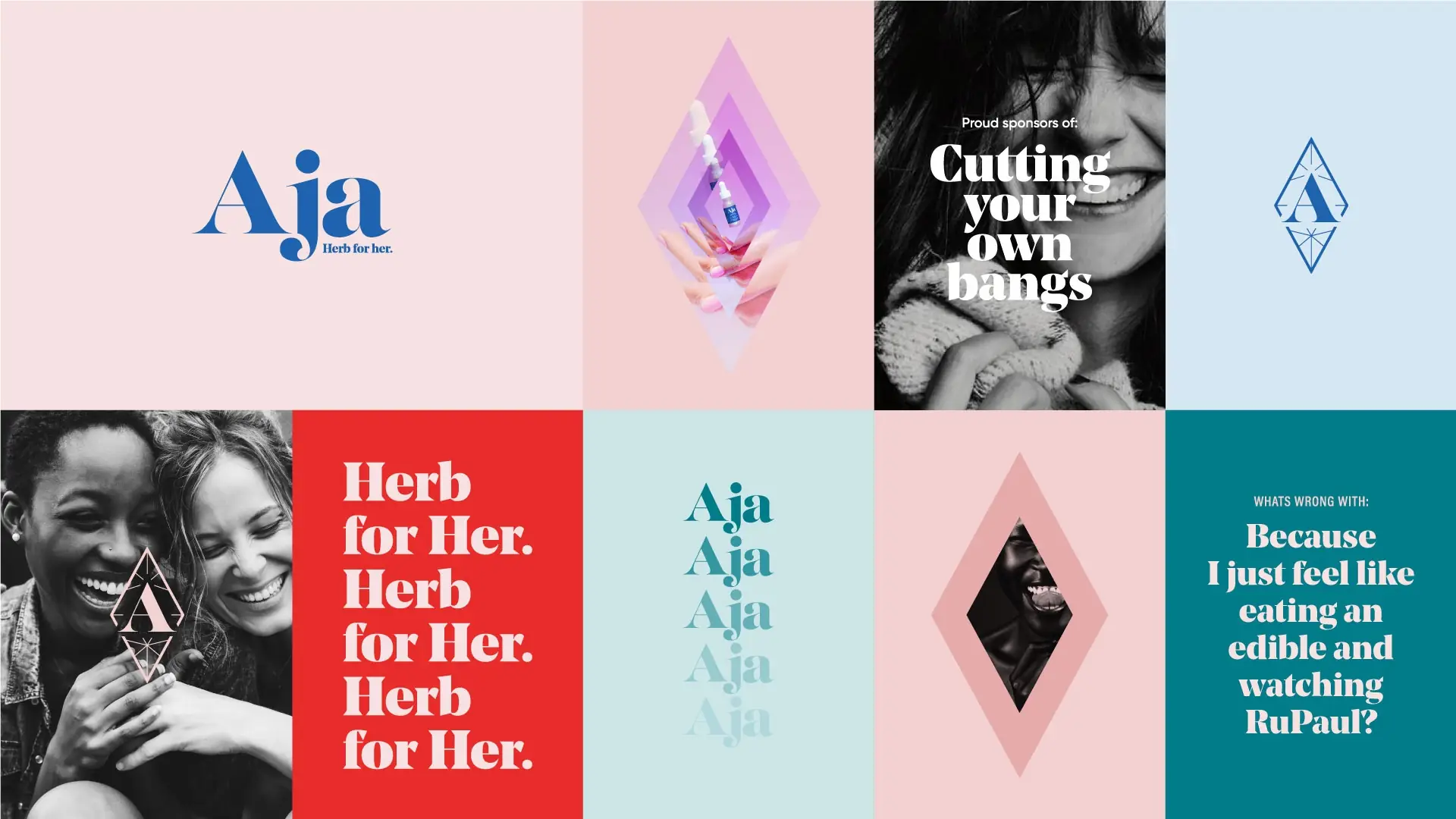 Women make up one of the fastest-growing consumer segments in cannabis, yet nearly every “women’s brand” still defaults to pain-relief, beauty tropes, or sterile, clinical aesthetics. As the industry shifts recreational, women are still expected to justify their consumption — to dress it up as self-care, wellness, or necessity. What didn’t exist was a brand that celebrated women’s real reasons for getting high: fun, pleasure, community, release, escape, joy, and living a more gratifying life. Aja needed to break from gendered stereotypes, challenge inauthentic category norms, and create a brand that actually reflects the women buying the product — confident, social, grounded, modern, and unapologetically themselves.