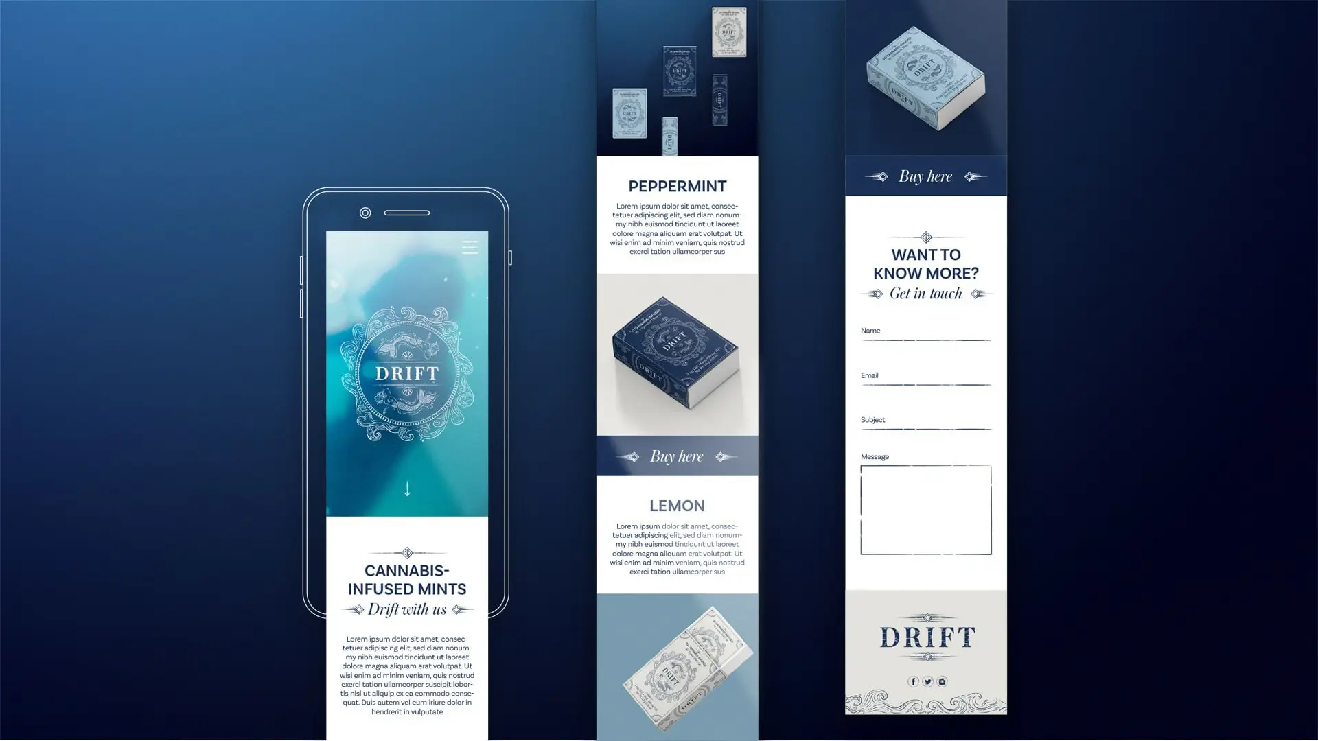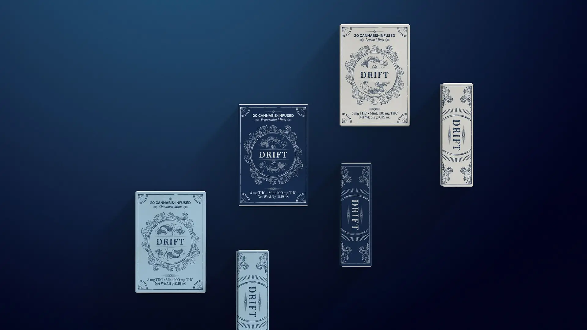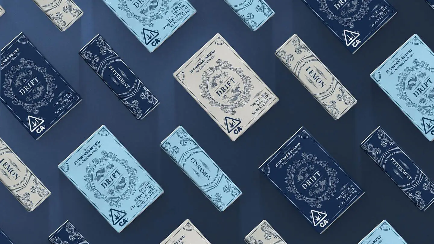 After making a name for themselves in the baked goods cannabis edibles category, the owners behind Drift wanted to make a splash with a new innovative product. Born & Bred worked in tandem with Drift to create cannabis-infused mints. We believed it’s subtle, easy-to-dose consumption would help push cannabis past stoner and medicinal purposes to recreational. (Mind you, this was a new concept in 2016 at the turning point for legalization.) We needed to create a brand that also pushed cannabis past stigmas. It needed to distance itself from everything in the industry that was either juvenile or overly buttoned-up. We decided Drift should be one of the first brands to have cannabis take a backseat. Instead, we lead with thoughtfulness, beauty, and emotion. For instance, the name Drift simply evokes a feeling, rather than explicitly referring to cannabis. (Again a new concept at the time.) From the line art mermaids to cannabis regulations that blend seamlessly with the design, we wanted the visually identity to flow—pun intended.