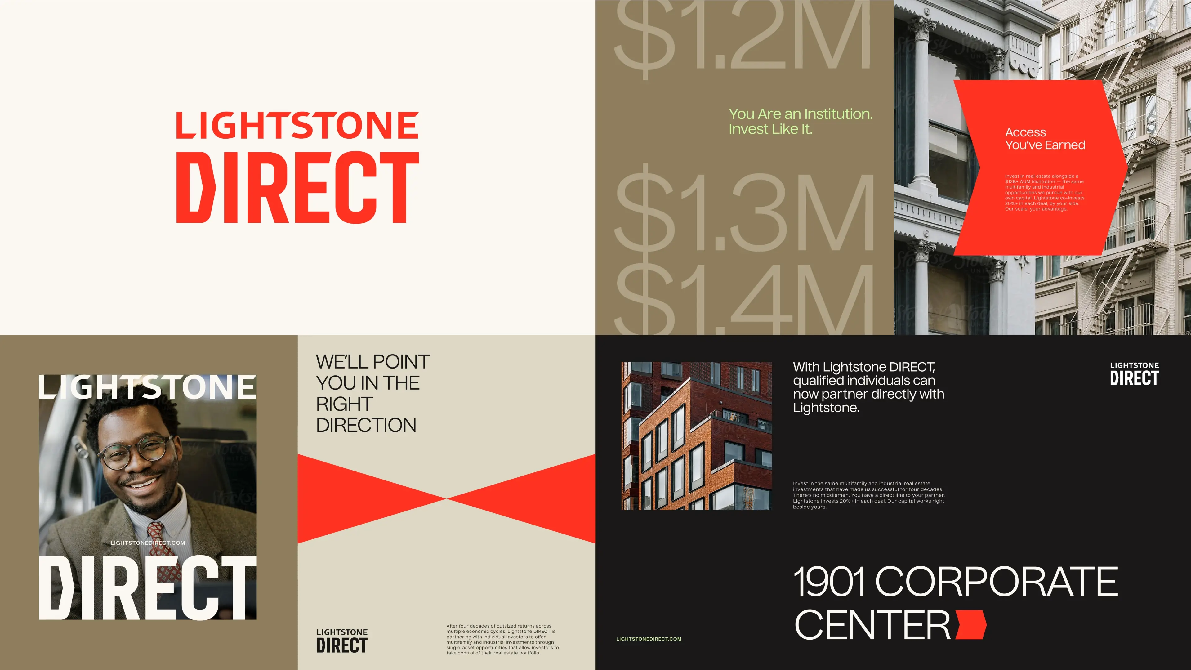 Lightstone Direct entered a real estate investing category defined by sameness: blue-heavy brands, sterile interfaces, and shallow educational content that talked at investors instead of guiding them. Despite Lightstone’s decades of credibility, the new Lightstone Direct venture needed a distinct identity strong enough to compete in a $10B+ digital investment landscape. Lightstone Direct also needed to differentiate from traditional Lightstone while still benefiting from its reputation, creating clarity for investors instead of confusion. As the market matured and investor expectations rose, Lightstone Direct required a brand, narrative, and digital experience sophisticated enough to stand out, and human enough to build trust.