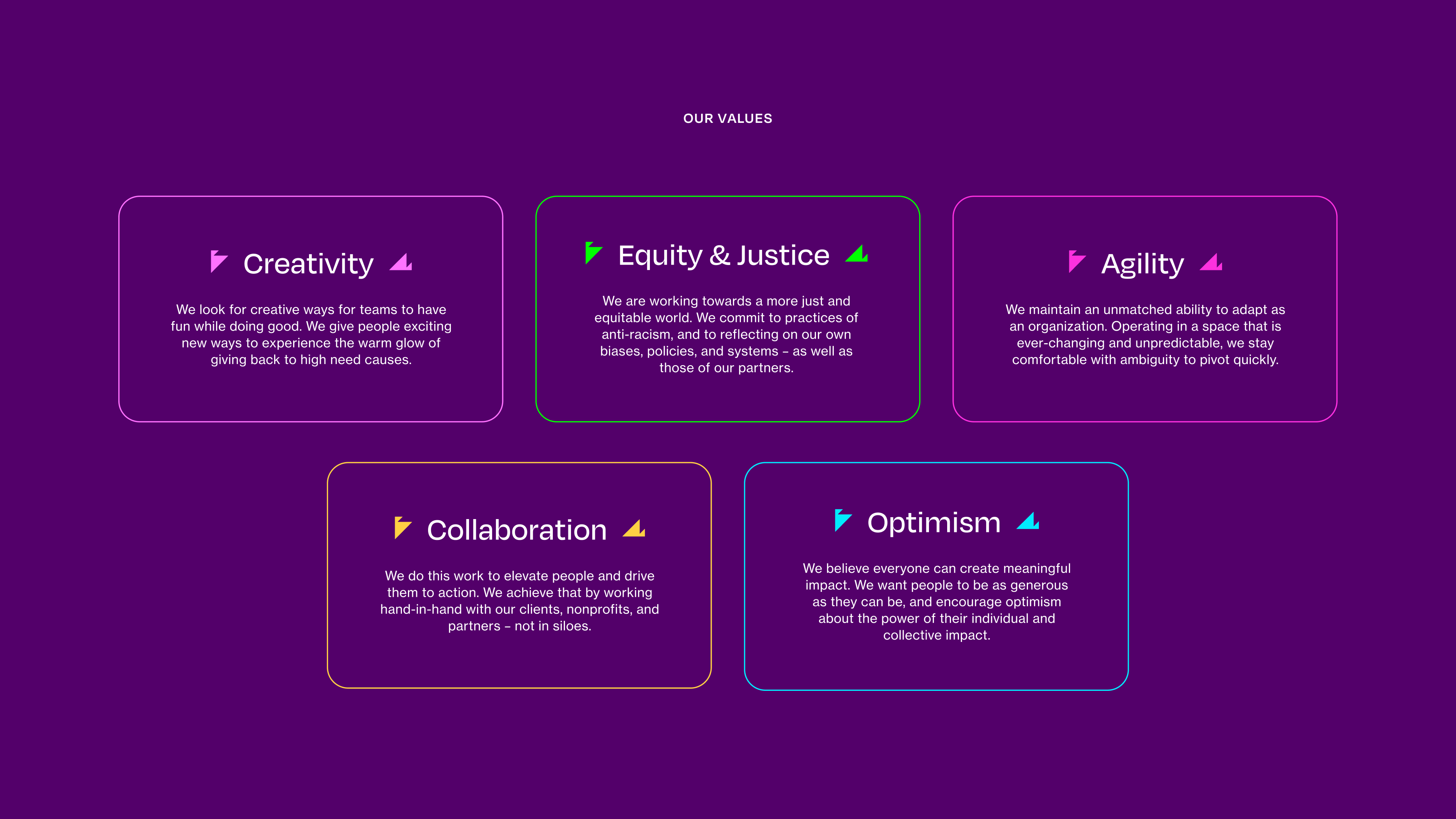 We created a vibrant, energetic new brand identity and web experience positioning the brand as the nonprofit partner of choice for next-gen employers. The new brand launched during RBU’s inaugural fundraising campaign where they toasted $12M+ in charitable impact since inception!
