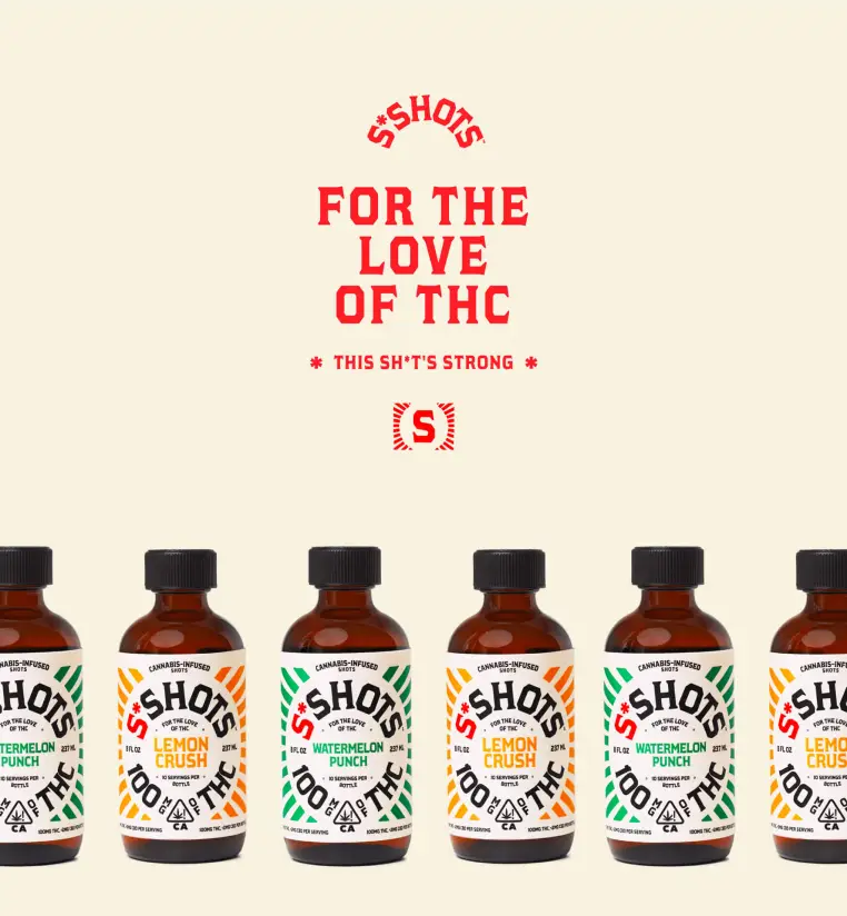 We scrapped the wellness act and leaned into weed culture. From the name to the attitude, we rebuilt the brand for people who take cannabis seriously, bold packaging, irreverent copy, and a tone that feels more sesh than science. S*Shots became “for the love of THC,” launching with a campaign that owned its strength and celebrated its community.
